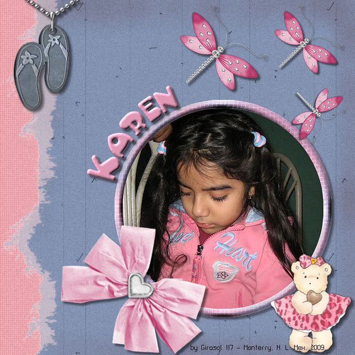 Los papeles son producto de mis prácticas, todas ellas asesoradas por MissDaisy, el papel rosa lleva efecto persiana, en el azul apliqué una máscara dándole un efecto envejecido. Los elementos los descargué hace ya tiempo, tanto que no recuerdo de donde, si son de tu autoría, ponte en contacto conmigo para darte el crédito que mereces.